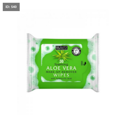 - المنتج: مناديل إزالة مكياج رغوية بخلاصة الصبار وحمض الهيالورونيك.